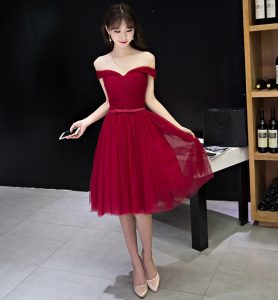 Red Knee Length Prom DressesThe satin off-shoulder dress with the ravishing red shade has a niceness of it. Adorn yourself with a neckpiece. Blue Knee Length Prom Dresses |