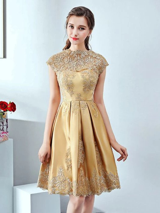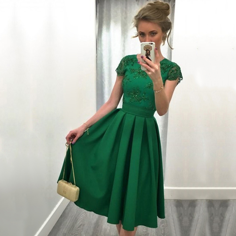 The lace dress has a vintage aura that women love to embrace. With pearl pieces of jewelry and a pair of stud earrings, this navy blue dress looks ideal. Green Knee Length Prom DressesGold Knee Length Prom DressesFor the sequin and shimmering effect of the dress speaks a lot. Do anyone needs any additional item to look glamorous other than this piece of clothing. Purple Knee Length Prom Dresses |